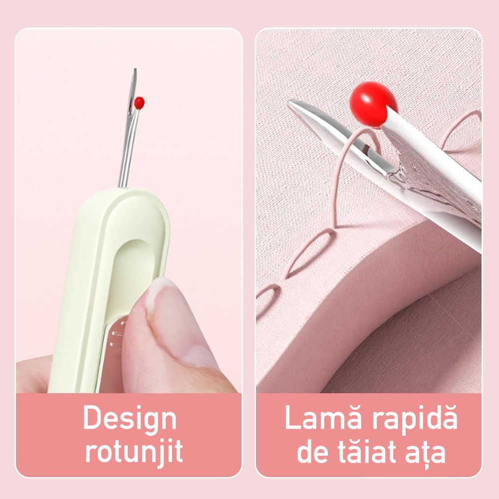 Spune adio aței greu de introdus în ac și cusăturilor desfăcute cu foarfeca. Rapid, precis și fără frustrări!
